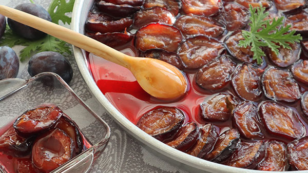 Make a perfect plum jam in a different way, not in a pan but in the oven! With roasting the plum, you end up with more dense flavor while keeping the pieces whole.