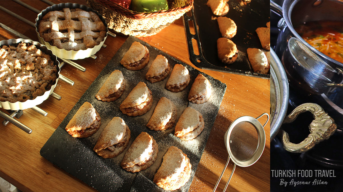 These apple-filled cookies are one of my favorite cookies of all. It is a traditional Turkish cookie kind in the modern Turkish Kitchen. But the dough recipes and shapes may vary.
