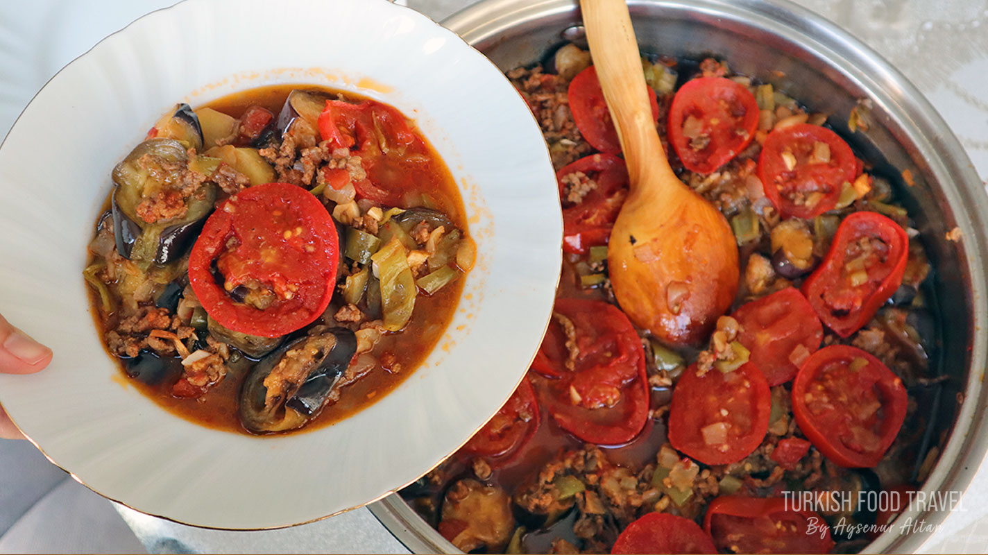 - Cook the eggplant moussaka “Patlıcan oturtma” on low medium heat until everything is soft for about 20 minutes. Turn off the heat and let it rest for 20 minutes If you have time and serve with rice pilaf or fresh bread.