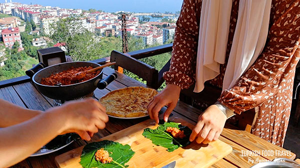 With local Zeynep Nadir, we made traditional Turkish dishes from the Blacksea region including rolled Kale “Kuymak” with oozing cheesy texture; “kaygana” simple egg dishes are other traditional breakfast dishes we made in old Konak House-cafe that widely served in the region.