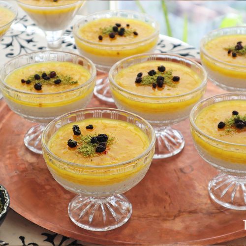 Traditionally Astarlı Sütlaç (Rice pudding with zerde) is decorated with pine nuts and currants. But since I didn’t have pine nuts, I used ground pistachios and currants to decorate. I served my desserts with the first Iftar menu I shared recently. On the menu, I had Muceddere and koftas. You can serve these desserts with your menus too. Bon Apetit!