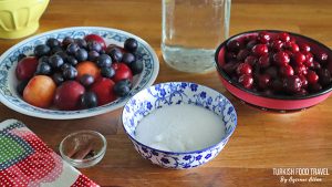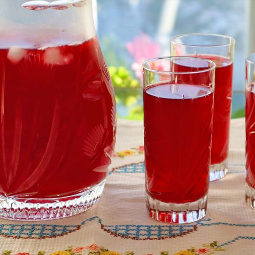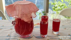 Turkish Sherbet or as we call it in Turkey "Ottoman Sherbet" is a natural homemade drink made with fruits like plums, cherries, and spices. It is a very refreshing and intense flavored drink.