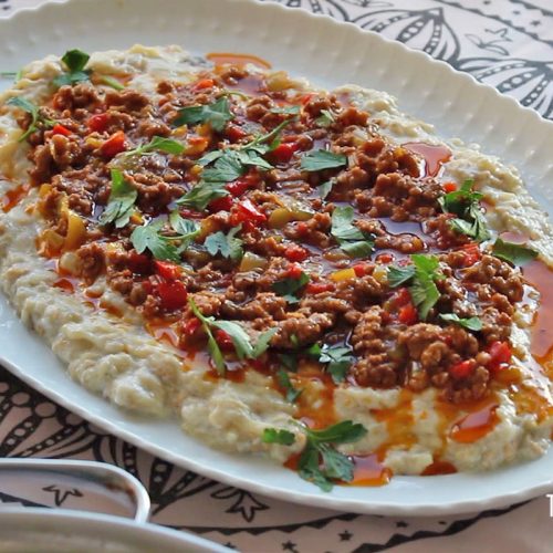 Also, you can serve as a side dish Turkish Rice Pilaf and Ezme Salad too. And our Eggplant Kebab Alinazik is ready to enjoy!