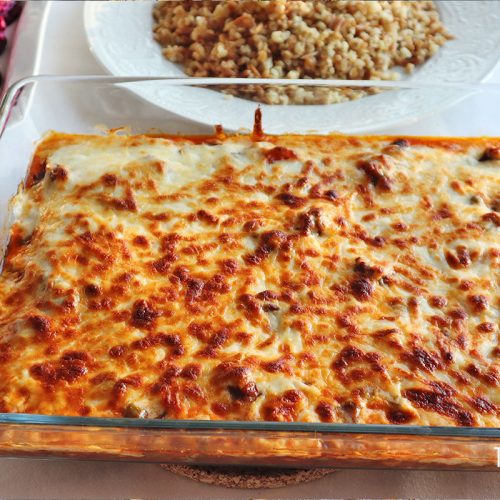 Turkish Meat Kebab has common ingredients yet with simple changes it turns into a festive main dish. The base is similar to Palace Kebab “Saray Kebabı”. While the Turkish Meat Kebab topped with béchamel sauce, Palace Kebab topped with potato puree.