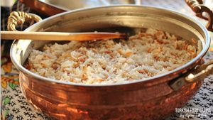 Pilav has an important role in Turkish cuisine. There is no good Turkish menu that is complete without having a nice fluffy, buttery pilav. Use the wide shallow pan as possible and a heavy bottom pan. In Turkey, we have pans that specially use for making pilav in good sizes.